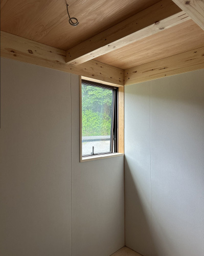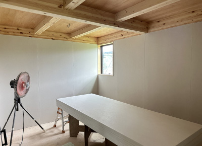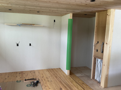 『green hill』では内部工事が進みます。 壁に『moiss』を貼りました。
