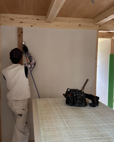 耐力壁となる部分では釘の種類や間隔、打ち込み方や下地状況など細かくチェック。