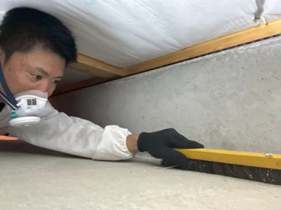 最後は今まで現場をまとめてくださったK監督が床下の清掃をします。