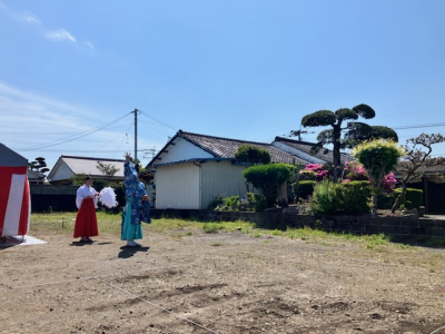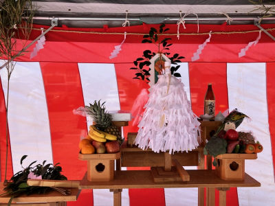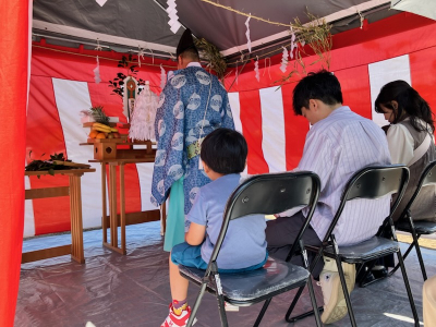 地鎮祭はこの地に新たな建物を建てるため土地の神様へむけた儀式。