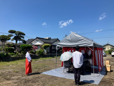 少し汗ばむくらいの好天のなか地鎮祭が始まりました。