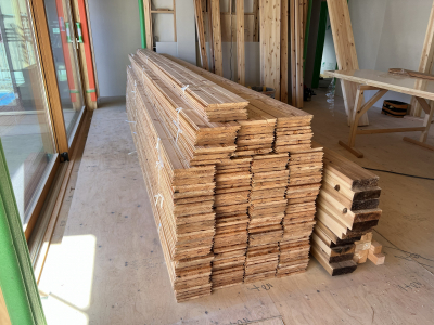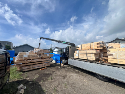 今回は屋根葺き工事を行いました! 運び込まれた材料たち。