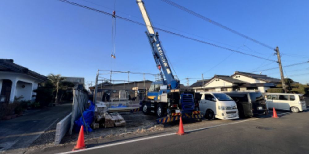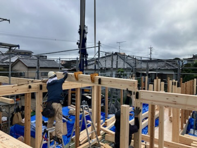 紙面上でイメージしていたものが立体化して姿を現す建て方工事。 わたしたちも胸にグッとくるものがあります。