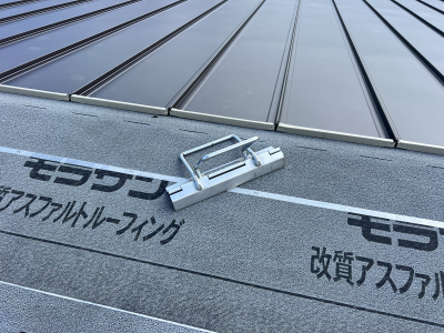 ↑屋根板金工事ならではの特殊な工具も。 そしてコの字部分の屋根を納めて、折り返しです。