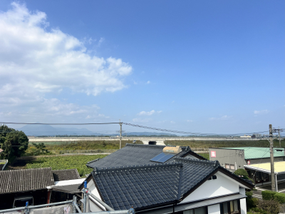 屋根に上がると本年開通したバイパスや、その向こうには霧島の山々も見えます(^^)