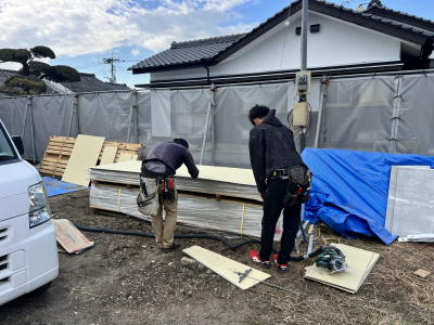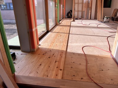 まずは耐力面材の取付を行います。