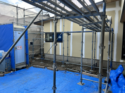 外部ではついに塗り壁工事が始まりました!
