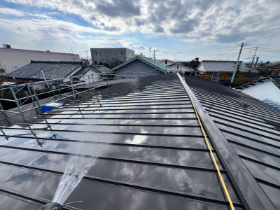 まずは屋根の洗浄へ。