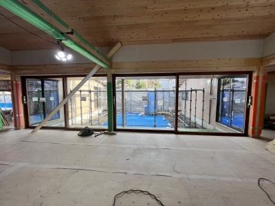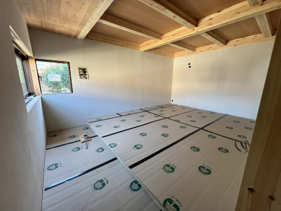 内部では床の仕上げ工事を進めております。