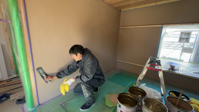 今回は大型な平屋建て全てを塗り壁で包み込みます。