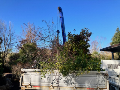 大中小、厳選されたさまざまな木々達が現場へ向けて出発します。