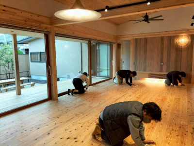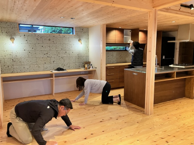 多くのお客様に感動と共感をいただいた完成お披露目会もおわり、 感謝の気持ちを込めお引渡しに向けて磨きをおこないました。