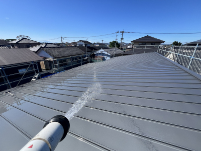 屋根板一枚ずつ磨いていきます。