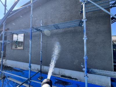 塗り壁部分も優しく洗い流します。