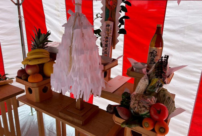 お施主様と一緒に私たちも、工事の無事と安全を祈願して玉串を納めます。