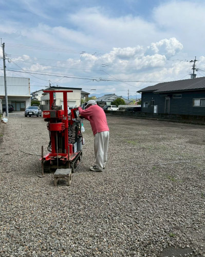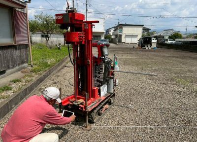 地盤調査専用のこの赤いマシーンが今日も現場インです。