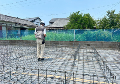 鉄筋径、ピッチ、被り厚さ、定着長さ・・ 細かなチェックを受けて・・無事適合です!!