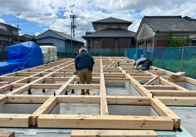 基礎と土台をしっかりと緊結し、大引きを組み込み、