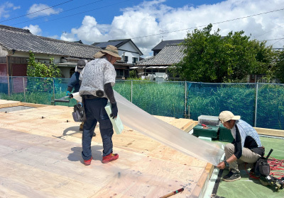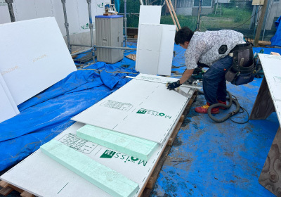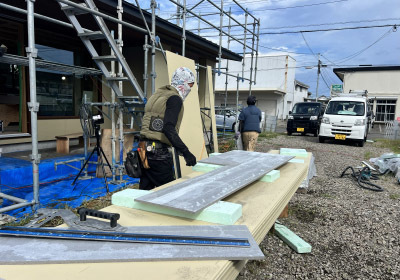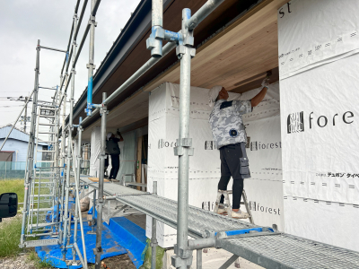 いよいよ外壁の工程へ。 棟梁により入念に下準備を施して・・