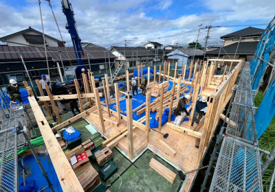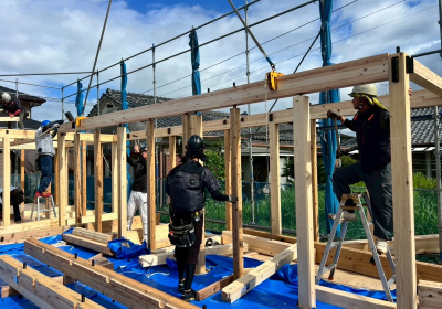 「ほっこりHOUSE」の現場にて建て方工事を行いました。