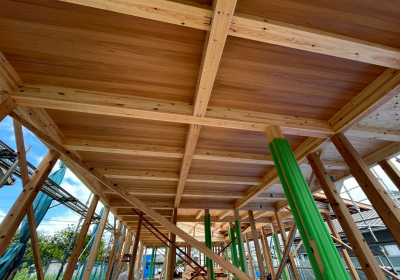 規則正しく、美しく組まれた構造材✨建物ができあがった後もこのまま見えます。