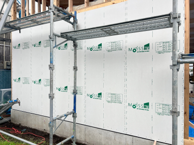 フォレストで標準採用しております耐力面材「モイスTM」です。