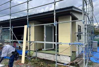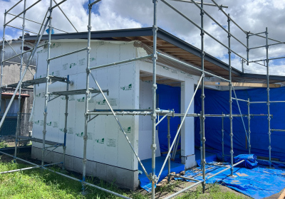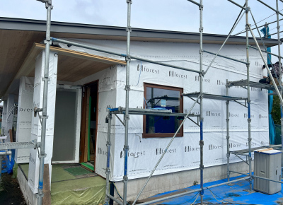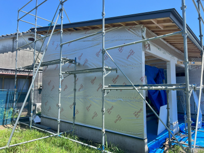 今回は外壁のほとんどを塗り壁にて仕上げます。