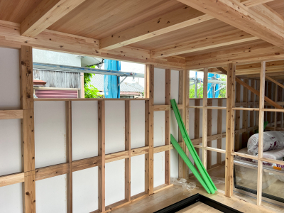 ただ張り進めていけば良いというわけではなく、計算に基づく所定の箇所へ、 壁量倍率に応じた規定の釘ピッチ等の施工方法を守ることで耐力壁として機能します。