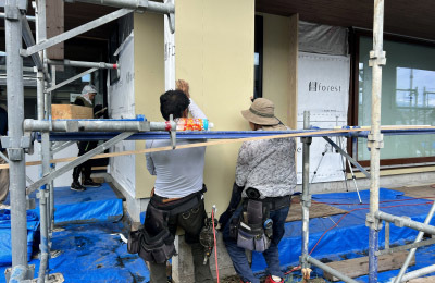 熟練の左官職人さんの流れるような連携によりスムーズに進みます。