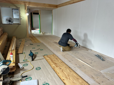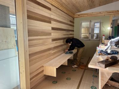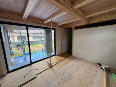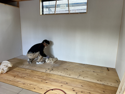 床の仕上げを終えるといよいよ造作工事へと進みます。
