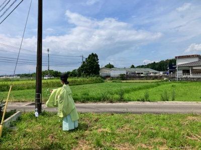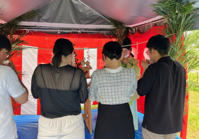 神主さんと共に土地の神様へお祈りします。