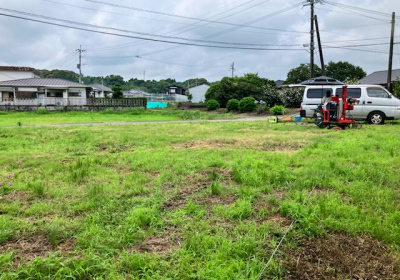 地鎮祭を終え工事の着工へ向け本格的に進みだした「gree N times」の現場 地盤調査を行いました。