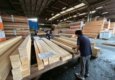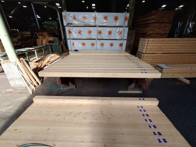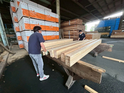 ずらりと並べられた構造材。