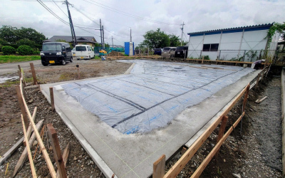 その後、防蟻・防湿シートを敷いて基準コンクリート打設。