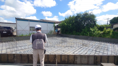 鉄筋組み完了後は、第三者機関による配筋検査を行いました。