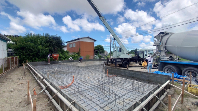現場「gree N times」は JIOによる配筋検査合格後、底盤部分のコンクリート打設を行いました☀