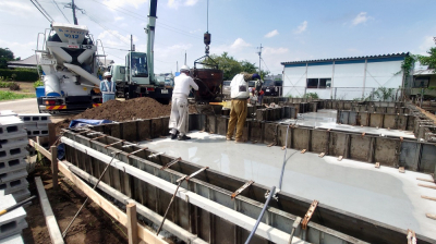 底盤部のコンクリート打設状況。