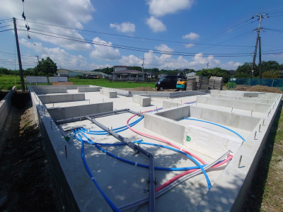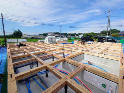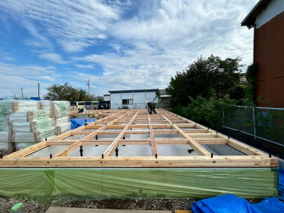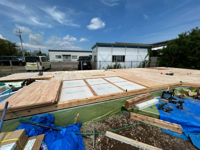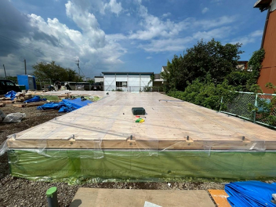 現場「gree N times」は基礎工事完了後、土台敷きを行いました☀