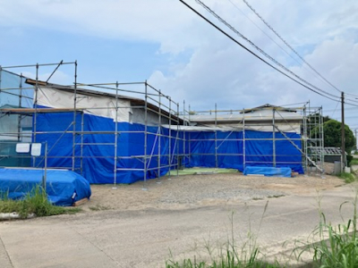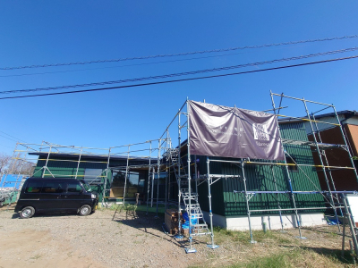 最後に建物全体をラッピングし建て方工事が完了です。