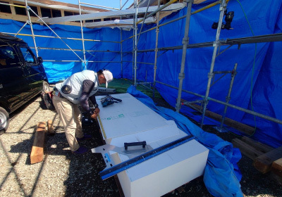 外壁材はすべて現場で採寸して加工を行います。