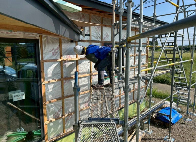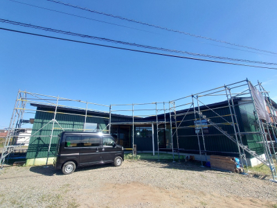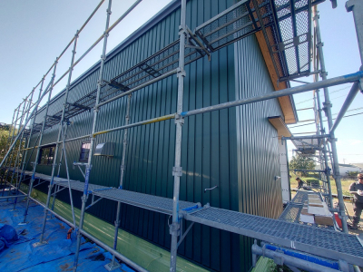 現場は工事終盤に入り建物の外部作業はすべて完了しました。