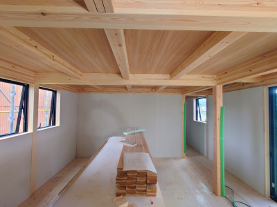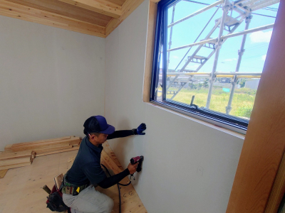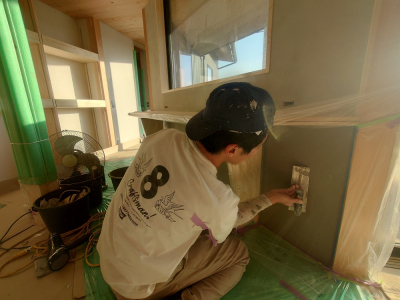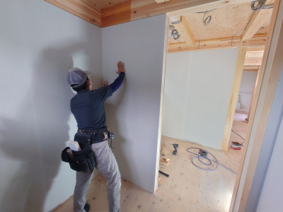 現場「gree N times」は構造検査合格後、内部壁の仕上げ工事へと進みました。 使用する材料はフォレストでお馴染みの