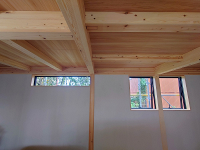 一カ所ずつ丁寧に組み込まれた構造材が規則正しい一つの構造体となって現われると思わず見惚れてしまいます。。