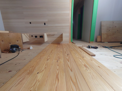 床材は浮造り加工されている杉の無垢材を使用しました。