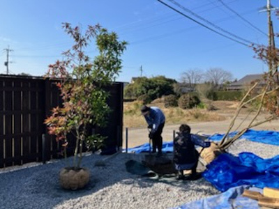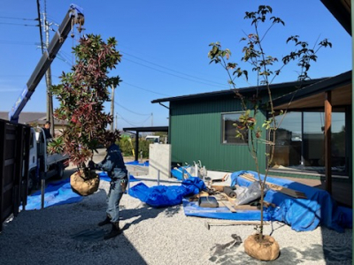 建物・外構が完成を迎えると彩を添える植栽工事へ。