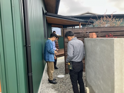 検査時間は30分ほど。 建物の内部、外部と細かなチェックリストをもとに検査されます。 構造検査は指摘事項もなく適合判定でした! 今後「gree N times」は内部の仕上げ施工へと進みます。