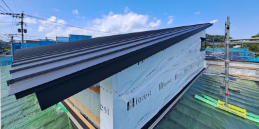 建物最頂部ではフォレスト仕様のすっきりとした片棟包み。