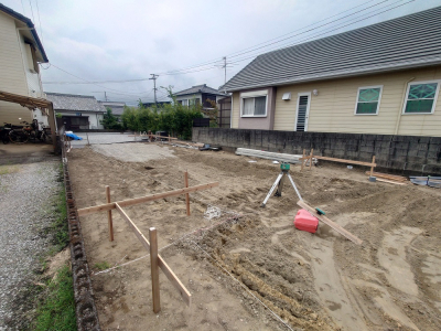 地盤調査の結果、良好な地盤と判断された現場 は 最終の着工準備段階へと入りました。