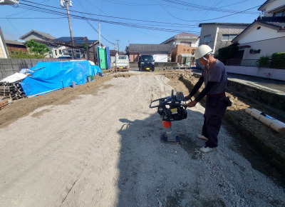 砕石を締める為に、ランマ―転圧をしっかりと行います👀
