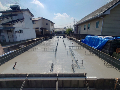 現場「house U」は JIOによる配筋検査合格後、底盤部分のコンクリート打設を行いました☀
